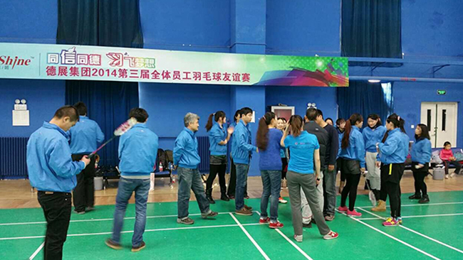 新征程 新飛躍 新輝煌2014年歲末,同“信”同德 “羽”飛夢(mèng)想,德展集團(tuán)2014第三屆全體員工羽毛球友誼賽圓滿結(jié)束,在強(qiáng)身健體、展示大家青春活力的同時(shí),很好地增進(jìn)了各位員工間的友誼和凝聚力,營(yíng)造一個(gè)自信、陽(yáng)光、充滿朝氣、永不服輸?shù)钠髽I(yè)氛圍。 在聚餐晚宴上,集團(tuán)董事長(zhǎng)要求辦公室這樣的比賽今后每年要不斷創(chuàng)新、繼續(xù)舉辦下去。