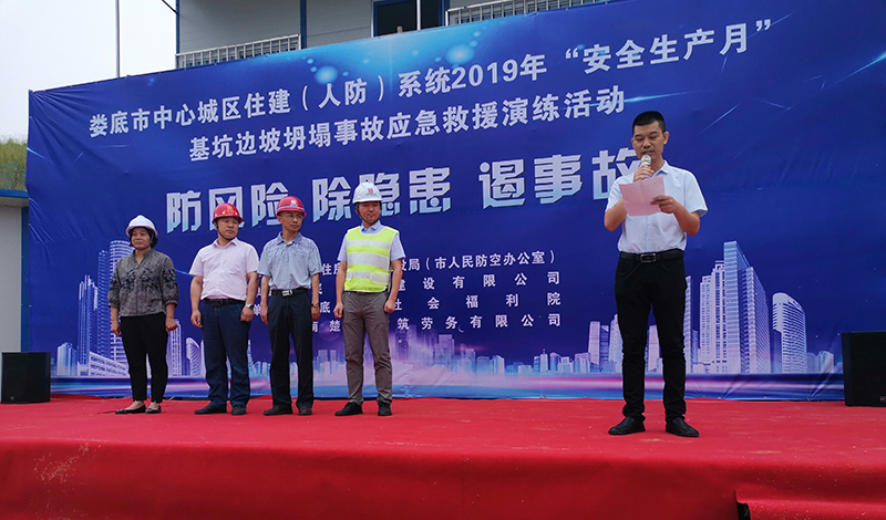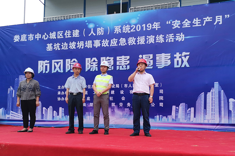為深入貫徹黨的十九大和十九屆二中、三中全會(huì)精神,認(rèn)真學(xué)習(xí)貫徹習(xí)近平總書(shū)記關(guān)于安全生產(chǎn)的重要論述,為新中國(guó)成立70周年?duì)I造良好的安全生產(chǎn)環(huán)境,積極響應(yīng)省、市關(guān)于2019年“安全生產(chǎn)月”活動(dòng)的有關(guān)文件要求,加強(qiáng)建筑工地應(yīng)對(duì)突發(fā)事件的處理能力,提高全員安全意識(shí),切實(shí)掌握應(yīng)急救援的技能、技巧,讓員工在事故發(fā)生時(shí)將傷害減少到最低。我司特承辦了由婁底市住房和城鄉(xiāng)建設(shè)局(人民防空辦公室)主辦的2019年“安全生產(chǎn)月”“防風(fēng)險(xiǎn)、除隱患、遏事故"建筑施工基坑坍塌事故應(yīng)急救援演練活動(dòng)。
