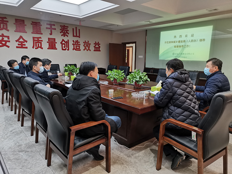 2月20日下午,市住房和城鄉(xiāng)建設(shè)局(人防辦)局長黃大生一行來我公司指導(dǎo)復(fù)工復(fù)產(chǎn)工作。黃局長對我公司前段時間的疫情防控工作進行了充分的肯定,要求公司按照市委政府的文件精神,采取有力措施,精心組織各施工項目全面復(fù)工。黃局長要求公司2月底項目開工率要達到全省平均水平,3月份各項目要全面復(fù)工,公司要確保全年的經(jīng)濟發(fā)展目標(biāo)不變。公司董事長張愛慧代表公司對黃局長一行在百忙之中來公司指導(dǎo)復(fù)工復(fù)產(chǎn)工作表示感謝并作了匯報發(fā)言。公司總經(jīng)理胡勁、總工程師彭洪偉、副總經(jīng)理顏克靈等參加了匯報會。